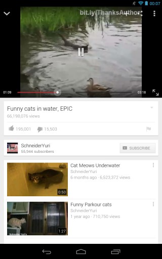 You can search YouTube, check your subscriptions or the video history, all while watching a video. It's quite clever: the video is minimized when you tap the arrow from the top-left corner or swipe down and it continues to play. You can go back to the video by tapping the small player or swiping up. Unfortunately, this only works in the YouTube app, so don't expect to see the minimized player when you close the app.